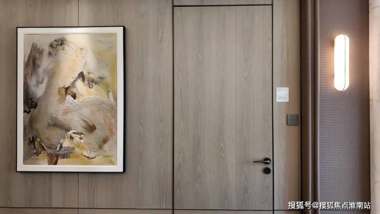 隐形门设计,保持视觉上的一致性。旁边的木饰面更“贵”,约114㎡采用橡木装饰,约126㎡采用尼斯木,多数只能在奢华酒店中、在千万级的大户型中才能见到。