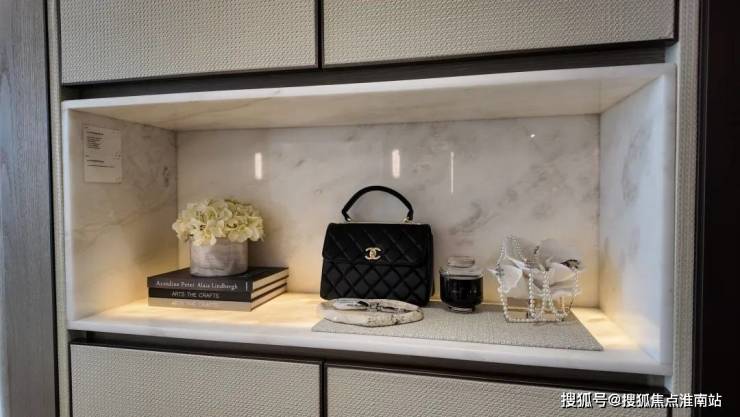 还有这个玄关柜的开放式收纳,四周一圈都是奢石,寻常项目也就一块奢石打底。