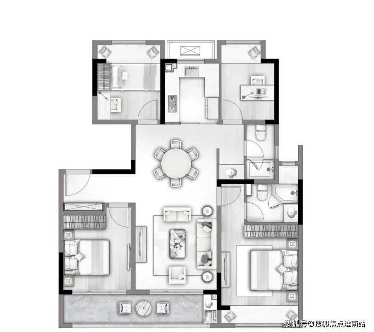望湖玫瑰园售楼处电话☎:400-998-9694✔✔当第一缕晨光穿过南向阔景阳台,洒向首层的餐客厅与卧眠区,三代人的一天在此徐徐展开。