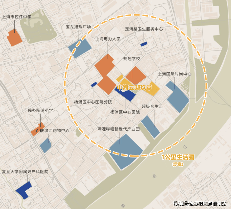 直线1公里范围内还有杨浦区中心医院、波阳公园、复兴岛、上海电力大学等咫尺全维度高能级配套。
