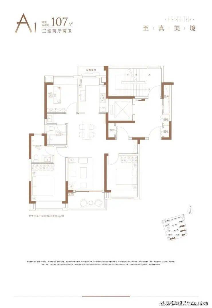 建面约107㎡3房2厅2卫户型