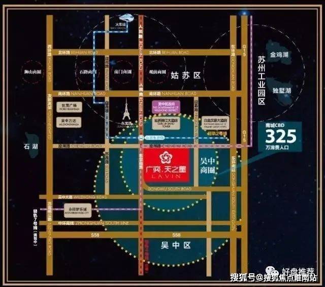 纯台式·精装修·酒店式公寓广奕天之星位于吴中高新区、越溪副中心双核覆盖区内的吴中综合商务核心地,该区域素有南苏州CBD之称,周边金融、商务、总部、专业服务机构等现代服务业环伺;中润中心、新苏购物中心、吴中商城、泰华商城等尖端配套环绕;苏州正轴“人民路-东吴北路-东吴南路”串联活力岛、火车站、观前、南门、吴中五大商圈;更有2、4、7号线三轨覆盖,促使广奕天之星板块价值急剧升华。
