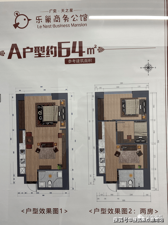 19户型样板间户型图及装修效果图(64㎡面积也可做两房)