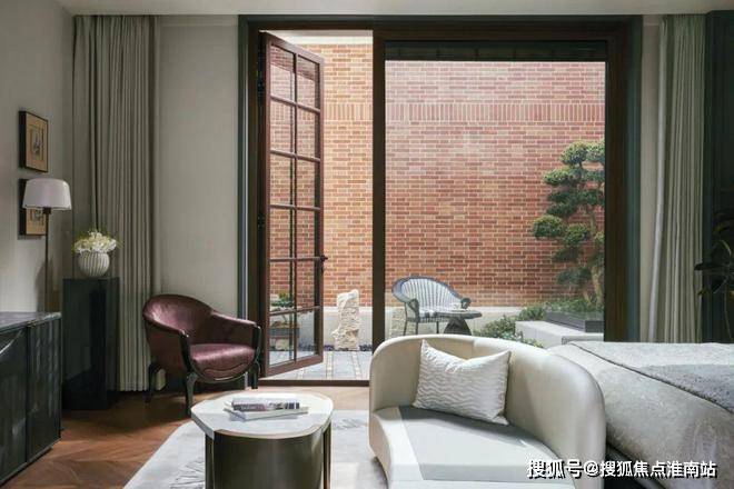 穿过一扇映照着摇曳树影的砖砌拱门,从中庭步入通向别墅区,眼前的大宅铺陈出一室典雅深沉。禅意园景、素雅石墙、朦胧灯影,饱含底蕴的装饰艺术风格和锐意的现代设计碰撞出耐人寻味的动态平衡,同时传达出融贯古今东西的折衷风格。