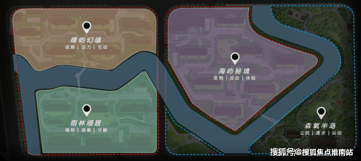 罕见双自然水系!一横一纵2条水系将项目地块一分为三,形成三座天然“岛屿社区”,这在市面上非常少见。