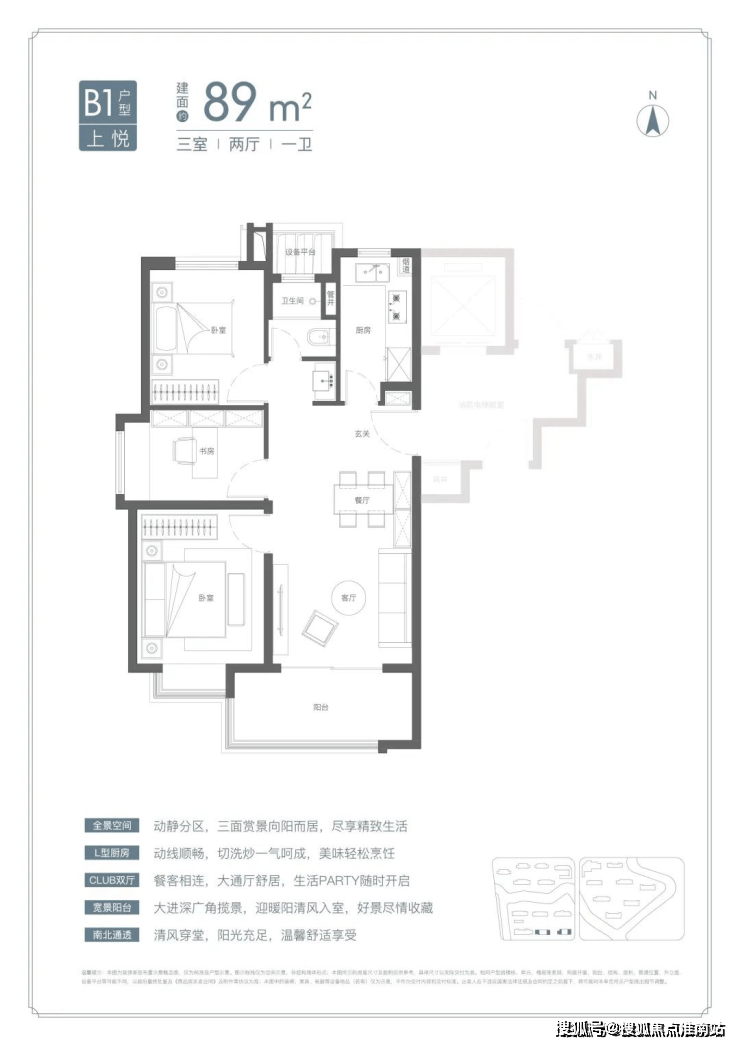 【建筑面积约89㎡3房2厅1卫】