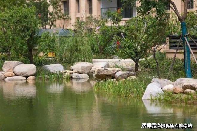 一湖三园的格局,1300平方米的人工景观湖如一面明镜,倒映着蓝天白云和参天树木,给居民带来了片刻的宁静与舒适。
