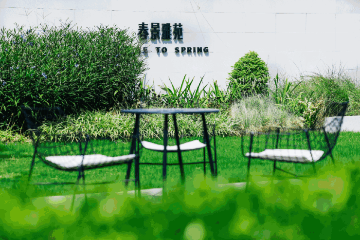 枝干婀娜的乌桕、圆满宽广的丛朴、郁郁青青的草坪...社区内大量绿色珍植,清澈水流潺潺而下,形成郁郁葱葱、层次丰富的景观。