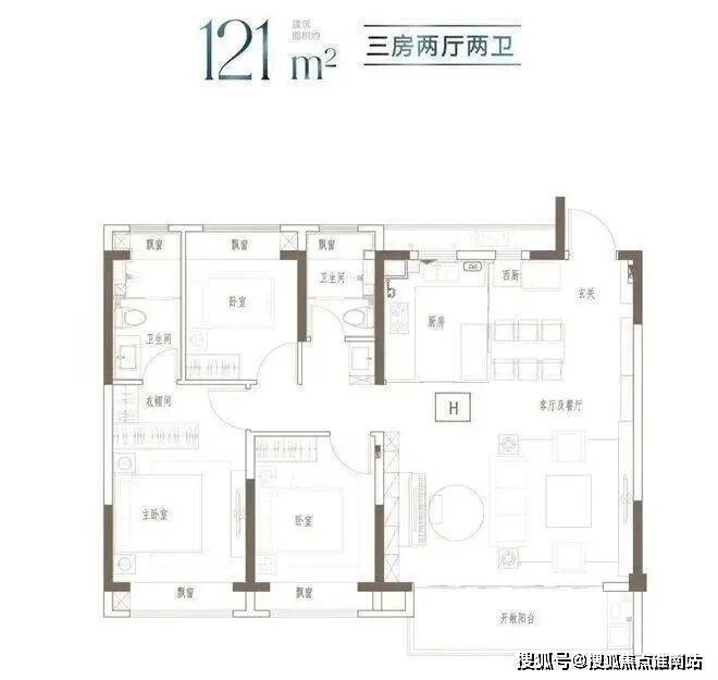 高层:LDKB一体化设计,得房率超80%,部分户型带全景落地窗