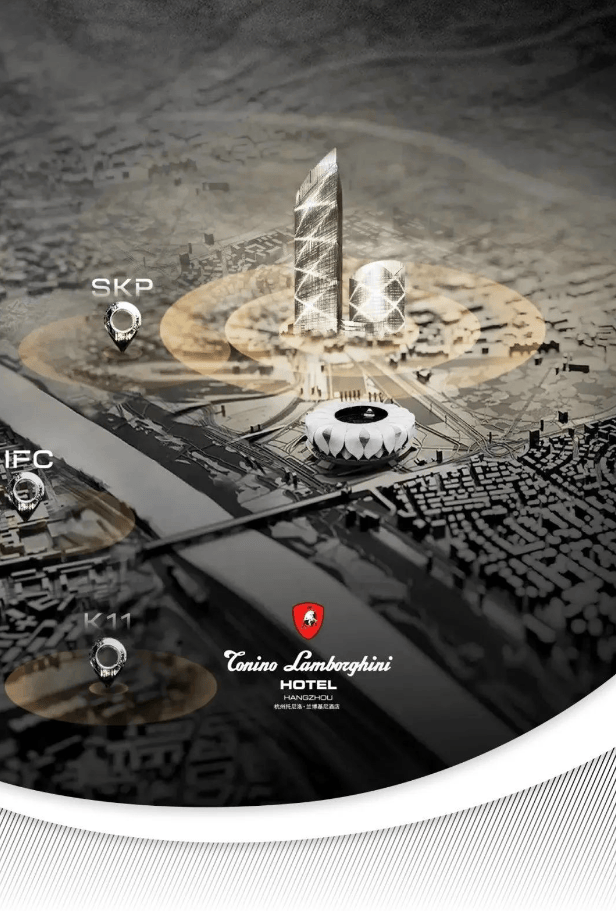 杭州第二家。第一家也在奥体,瑰郦中心的姊妹篇——翡郦中心的托尼洛兰博基尼ROSSO酒店,已经交付开业。