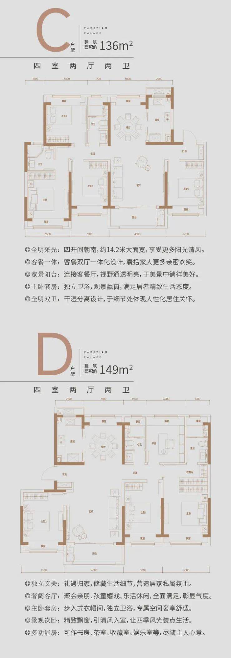 建面约165㎡奢境户型,南向四开间面宽可达约16.2m,约6.2米宽厅连接宽幕阳台,突破性尺度设计,带来通透的全景视野,一眼望向城市自然与繁华,居住于此,大平层的尊崇奢居体验油然而生。