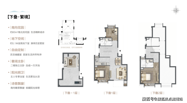 户型简评:南北入户花园;三开间朝南,采光充足;5.1米挑高地下室,灵动可变。