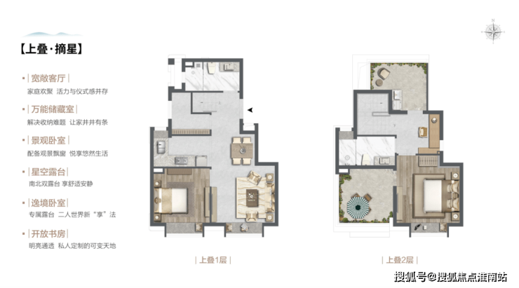 户型简评:设计前卫,静谧空间,【佘山望】联排+叠墅赠送北侧多功能露台。
