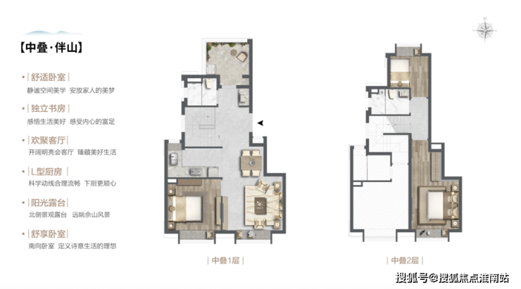 佘山望有上下多层的户型,其中建面约90㎡叠墅【山屿墅】,【佘山望】联排+叠墅共有上、中、下叠,均是三房空间,上下分境,充分照顾二人世界、三代同堂的不同生活习惯。独立入户,弥补了大平层密集交错的社区环境短板,舒适感和尊贵感深度彰显。