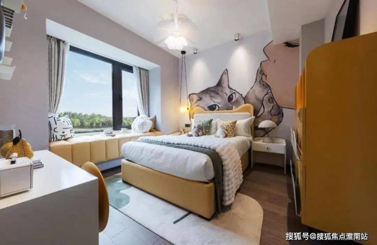 下叠一层南向卧室面宽约3.2米,全明透亮,推窗即景。可作为老人房或者儿童房,避免爬楼梯的不便和风险,方便父母生活起居。