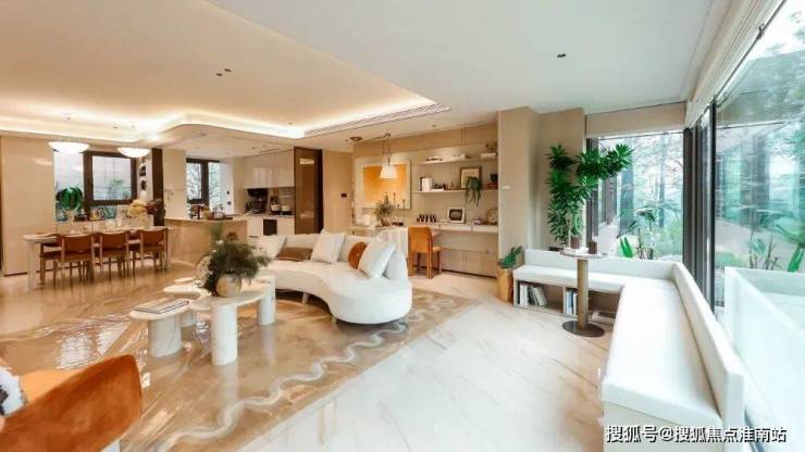 结合局部弧形玻璃与超大窗墙比,真正实现了“引景入室”,让家变成公园的观景台,重新定义了居住的视野界限。