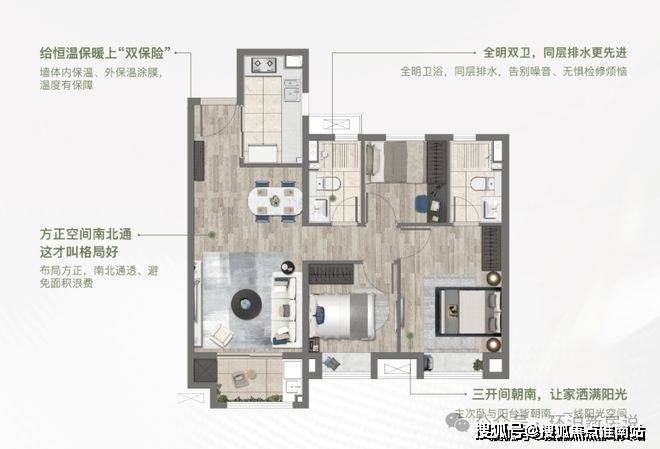但在宝业·活力天境,你可以选择建面约86㎡宽景两房以及95㎡实用三房,不仅如此,还都是品质装修交付!
