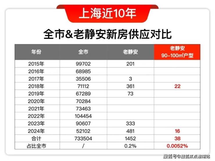 更进一步,在1452套老静安新房当中,大户型是绝对主流,90-100㎡中小户型10年来只供应了38套!占比总池子仅约 0.0052%!