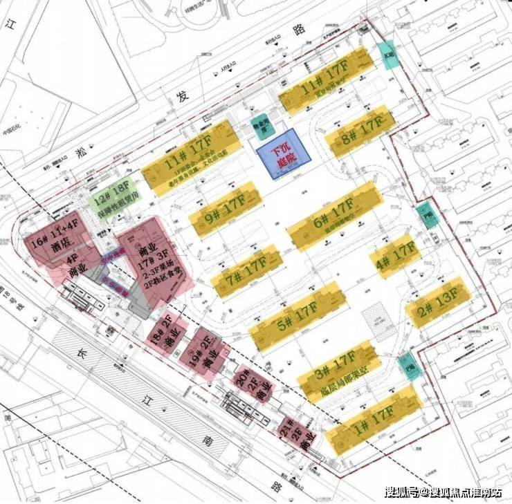 住宅大部分是17、18层的高层住宅。其他两幢在12、13层。绿地率约32.75%。西南侧为商业用地,规划有酒店、社区食堂、菜场等。