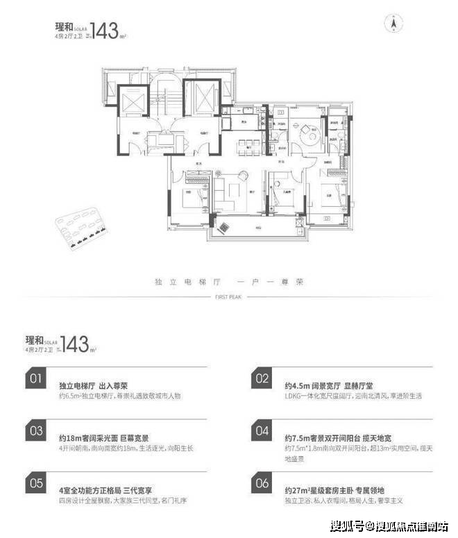 项目主力户型为143-330㎡四至五居大平层,采用精装交付标准,具体包括: