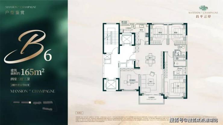 昌平云岸售楼处电话:400-8118-224 建面约165㎡4房2厅2卫户型