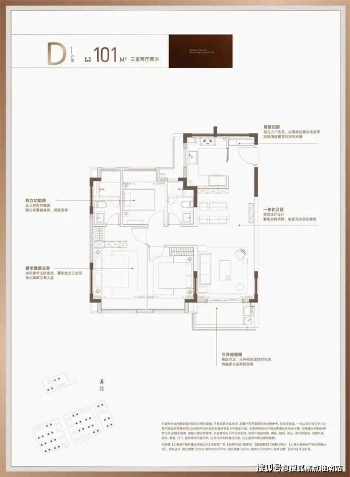 以主力建面约101㎡3房2卫户型为例,得房率高达约80-81%, 实际使用空间高达约80-82㎡,甚至超过了市面上部分洋房产品。