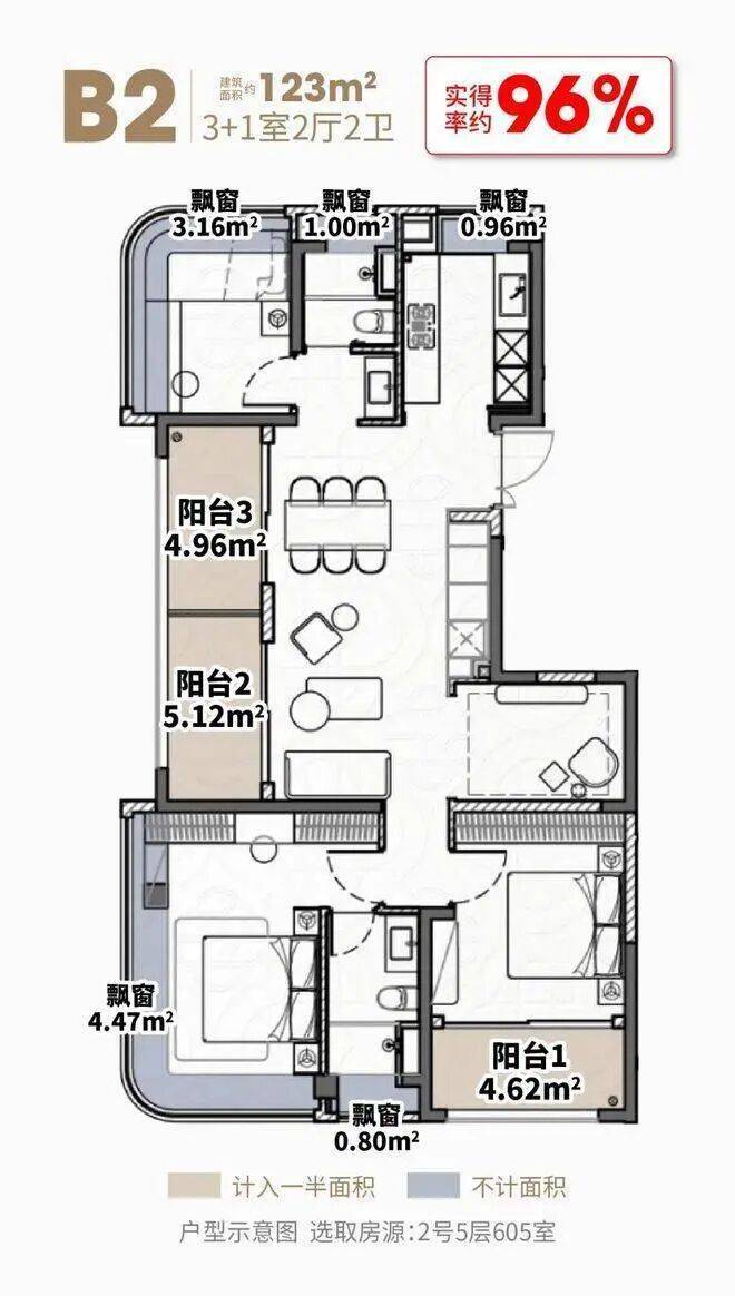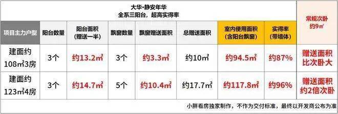 当市场还在为75%得房率挣扎,以全系三阳台+飘窗矩阵掀起降维打击——最高约96%实得率,让建面约108㎡碾压传统120㎡,约123㎡叫板140㎡!