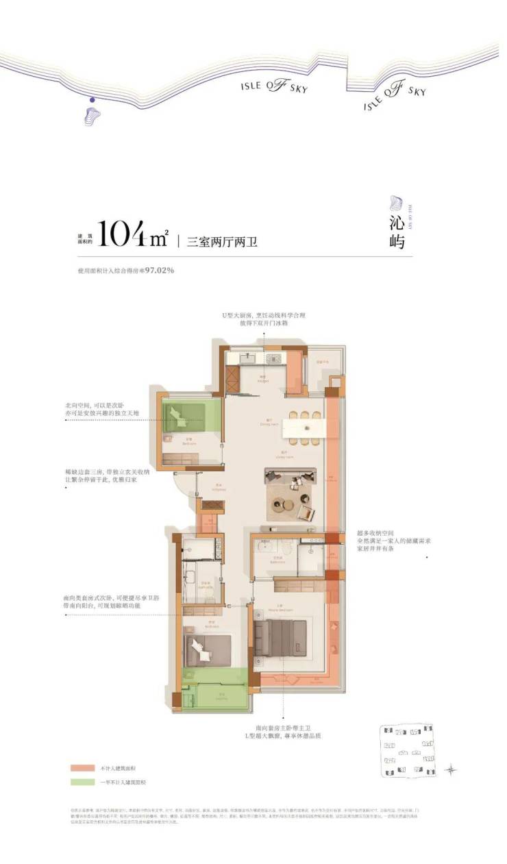 建面约103㎡明星边套户型,是目前市面上实用率最高的三房格局,得房率高达100%,绝对的“0公摊”,主卧竟然设计270°转角飘窗,通常只在市中心千万级豪宅中才会看到,是全杭州小户型中的唯一级了。
