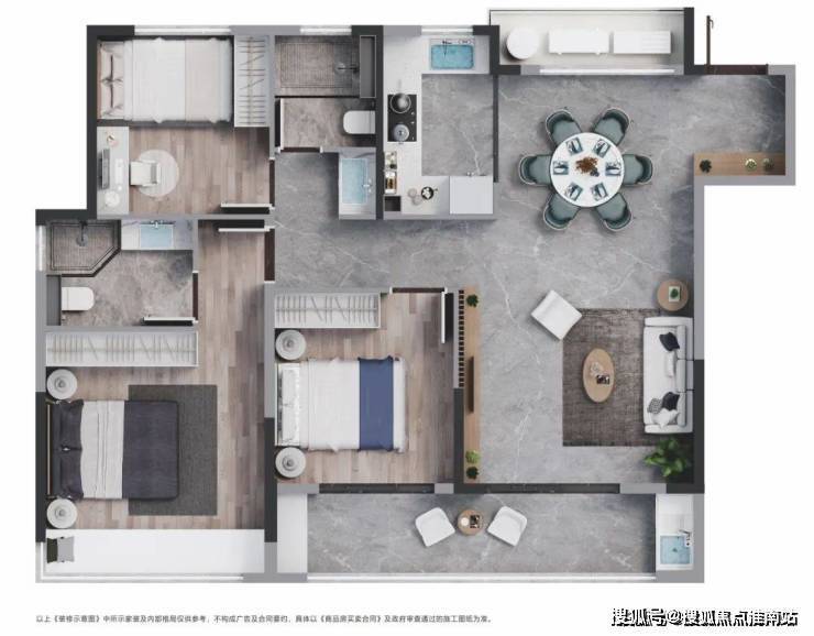 论配套,他有各种社交功能空间,以及度假风戏水池。