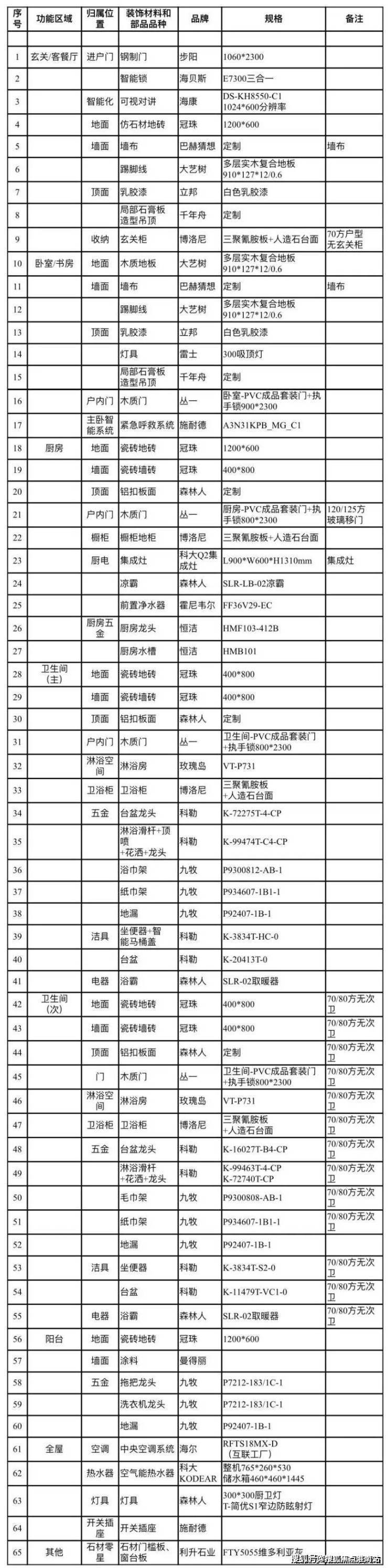 还有立邦乳胶漆,大艺树的地板+踢脚线,千年舟的石膏板吊顶,雷士的灯具……一应俱全。