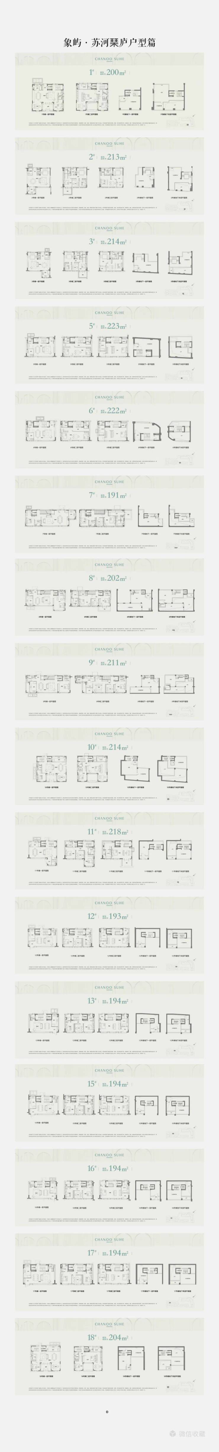 风貌别墅:建面约190–220㎡(共16席),联排/合院形态,下叠带私家庭院,上叠带全景露台