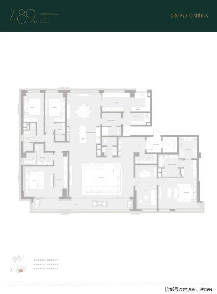 露香园·天誉约489㎡的整体面宽是4个产品中最宽的, 达到了约26米,比另外三个产品多了4米左右,相当于多出了一个开间,另外三个指标性项目互有来回,包含玄关空间尺度、厨房空间尺度、次卧面积尺度, 整体是一个以大面宽为核心竞争力,较为均衡的产品。