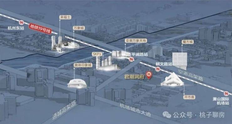 要知道,地铁19号线堪称黄金大动脉!从君潮润府出发,一站瞰亚运,两站汇江河,三站杭州东,四站西湖文化广场,五站钱江路。还有两端的「第三中心」杭州未科&云城、国家级临空经济示范区……