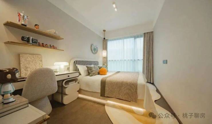 进门位置超配奢阔独立套房,拥享独立卫浴,对于有老人和保姆需求的家庭来说,简直是福音。