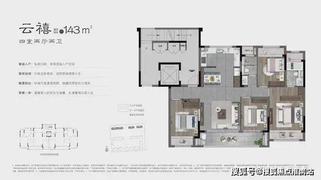 低密设计:楼间距约40米,得房率超82%,户型建面124-159㎡,全四房设计,南向阳台仅计一半面积,飘窗及设备平台不计入产权面积