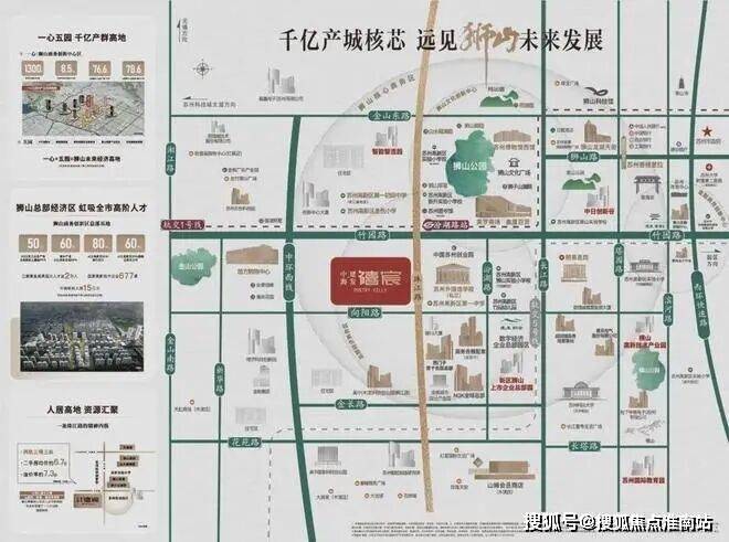 ◆一心:狮山商务创新中心区——自西向东由狮山路CBD核心区、狮山广场文化区等产业区域构成。