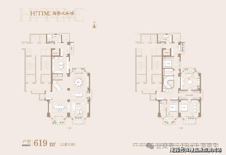 3号楼单元建筑面积:约600㎡—1220㎡住宅部分全部大平层(复式)设计.