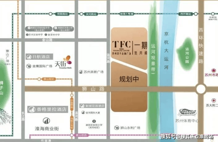 本项目在狮山桥下,京杭大运河旁,占据了新区狮山板块的核心地段,坐享新区繁华商圈,紧邻姑苏古城风韵,集人文精神和高品质生活为一体,将打造为狮山板块乃至苏州市具有代表性的地标建筑。