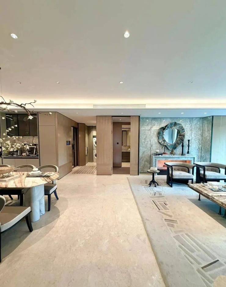 同时也得益于两个地块融合在一起形成了完整地块,项目打造了约160米超长中轴,约4000㎡中轴景观,约700㎡落玉水院、下沉庭院以及私属入户花园。