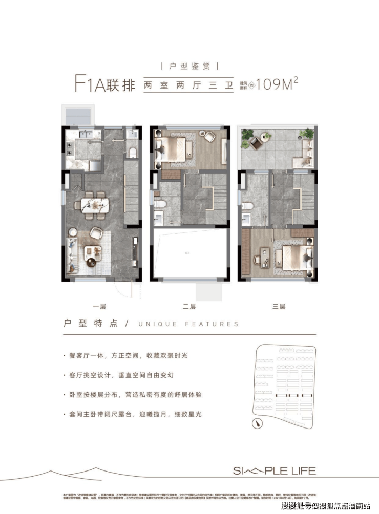 在售面积:洋房75㎡、联排89-109㎡