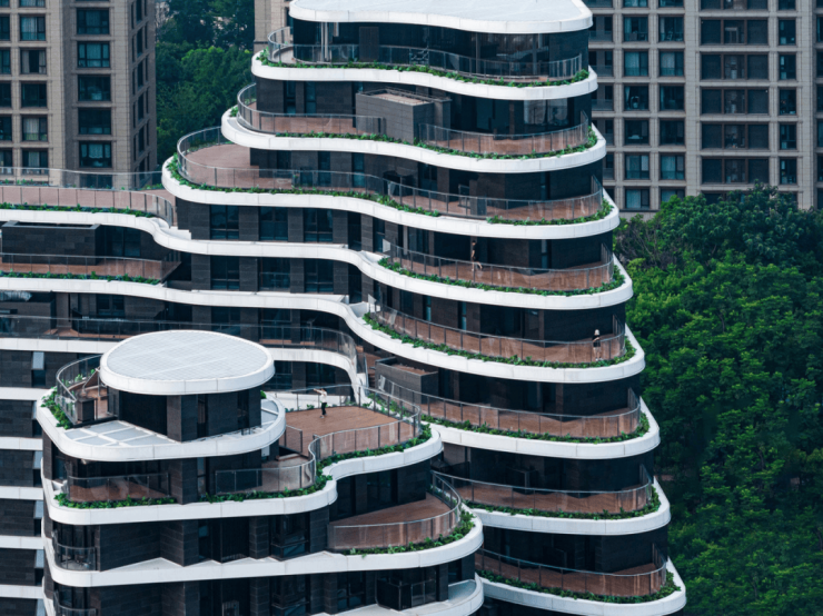 国际知名设计事务所--EID Arch设计,秉承建筑艺术化的理念,大胆采用波浪形状的建筑外形并巧妙融入独特的层层退台式弧形曲线设计,完美将当代时尚元素诠释东方的空间传统与江南人文精神。