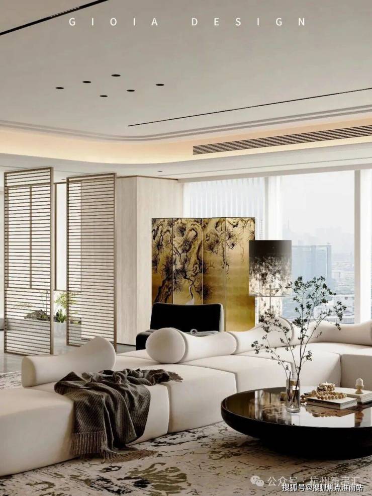 将艺术感进一步融入日常中。特别设计的专属门厅空间,是从电梯厅延伸到家,如同一处艺廊,放慢人的情绪;室内选用了浅金色奢石(外界也称其为“芬迪白大理石”)作为主要的石材,曲面的木饰面也为浅色,整体给人以明亮感。