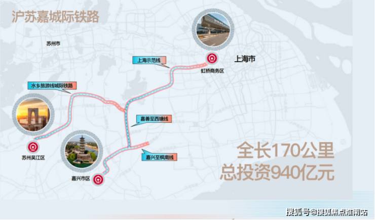 当然映辰周边还有一个高能级铁路——沪苏嘉城际铁路,上海境内的上海示范区线串联虹桥国际枢纽、青浦新城、华为研发基地、长三角演艺中心、美的全球创新园区、西虹桥科创中心、安踏全球零售总部等多个产业高地,以后从大名城映辰出发,刷公交卡坐城际铁路就可以去沿线的名企上班了。