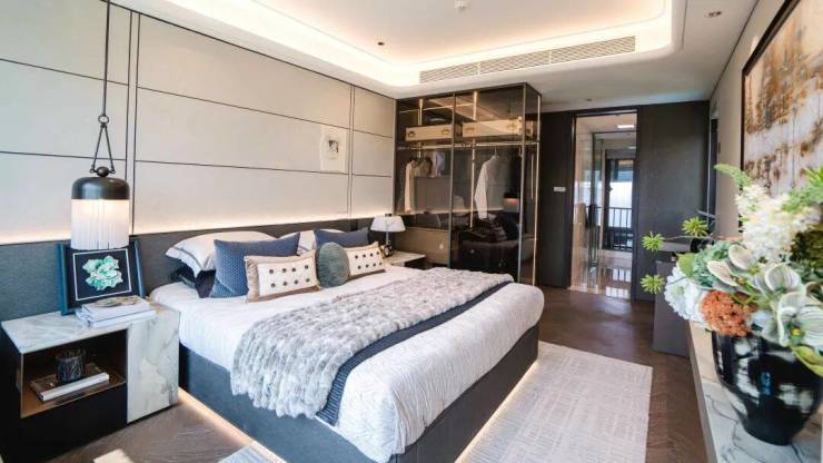 约5.6米大面宽竖厅串联双阳台,结合墙体错位嵌入储藏系统,兼顾美观与实用;南向三卧布局,约9.3米巨幅观景面,尽揽阳光与风景;观景阳台配合弧形外立面,媲美主城高端项目质感;德系厨电与日立中央空调等奢装配置,满足三代同堂的私密与互动需求。