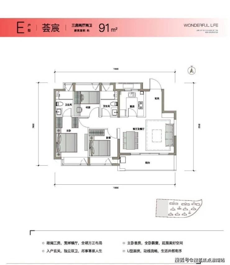 同尺寸罕见双阳台双卫户型