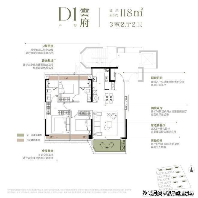 ⑤高层主力面积为115-140㎡,叠墅建面约170-200㎡