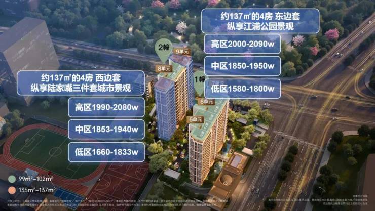 2、建面约137㎡4房也同样非常有性价比,在西边套有陆家嘴三件套景观、东边套有整面江浦公园的景观资源加持下,最低价还能做到1580w,景观楼层最好的一套总价也仅约2090w。