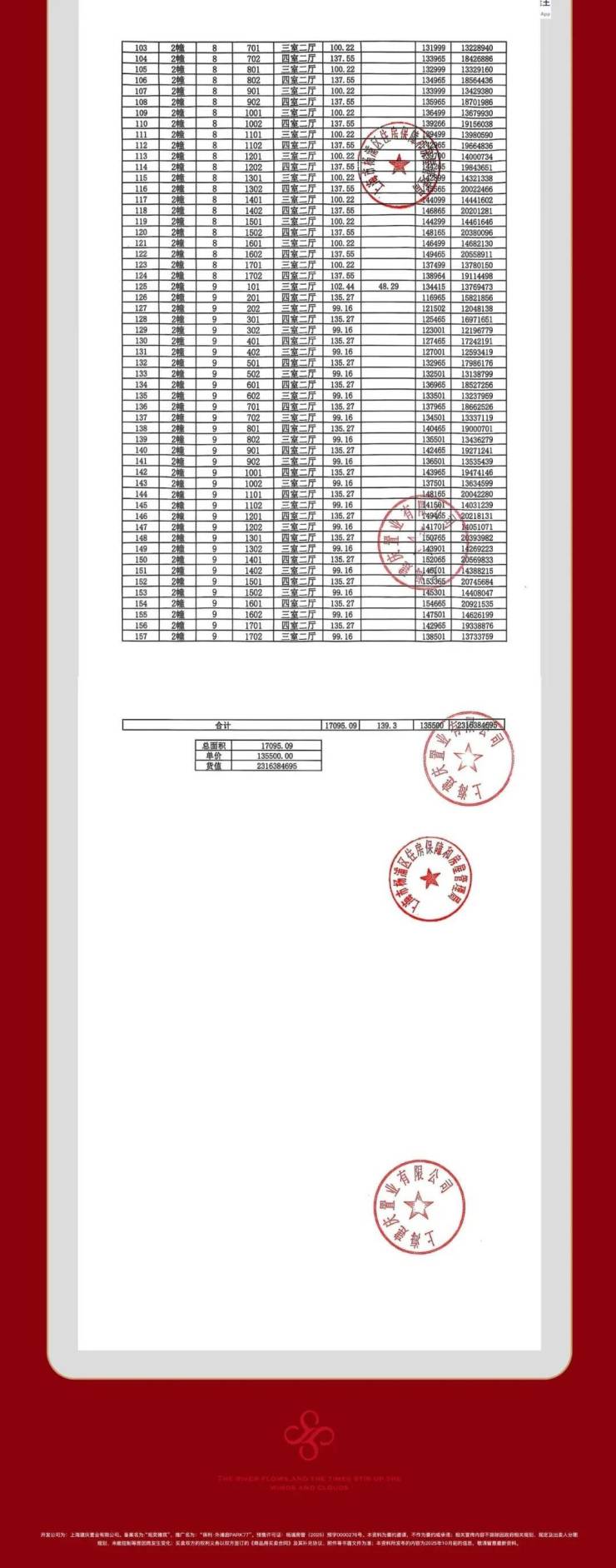 均价与总价:均价约 135500 元 /㎡;建面约 99㎡三房总价约 1137 万起,137㎡四房约 1856 万起