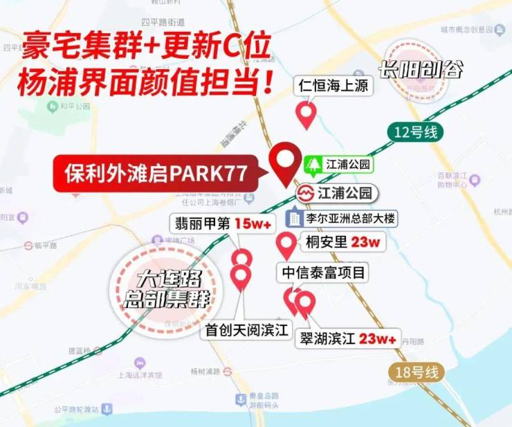 而#保利外滩启PARK77与北外滩地王直线距离仅约2.2公里,未来将与北外滩共享界面更新、配套升级、生活方式迭代,更将同步承接价值的全面焕新 。