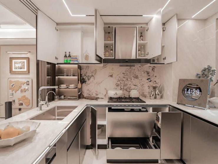 收纳革新体系,将面积约18.06㎡的全屋收纳容量,折叠进2/3的户型面积,以“入户、家政、卧室、厨房、卫生间”五大收纳空间的扩容革新,雕琢每一立方厘米的精致生活。